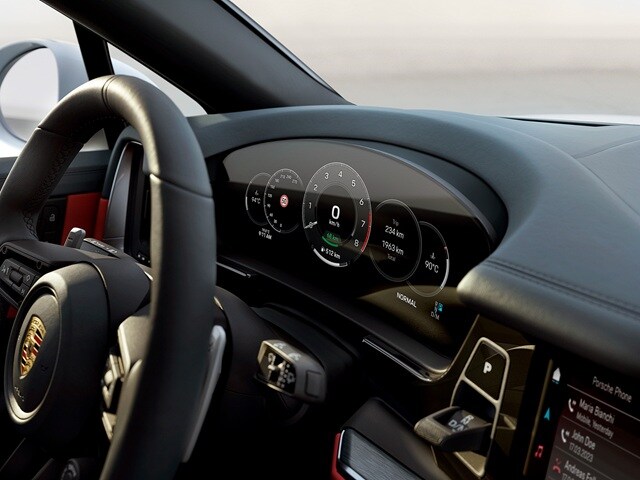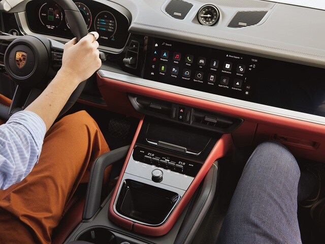 Porsche equips the 2026 Cayenne Coupe with cutting-edge technology that enhances both connectivity and convenience. With a 12.9-inch main display and 10.3-inch passenger display, either you or your right-seat rider can easily control navigation, media, and more while on the go. Plus, should you upgrade to Bose or Burmeister premium audio systems, you'll get the benefits of Spatial Audio to further enhance your favorite music. The new Porsche App Center also adds convenience, allowing you to download apps directly to the infotainment system rather than relying on smartphone linking to get what you want. That said, smartphone integration via wireless Apple CarPlay and Android Auto still allows seamless access to music, navigation, and hands-free communication if you prefer this approach. The latest Porsche Communication Management system offers voice control and natural language recognition, providing a safe and intuitive way to control various features while keeping focused on the road. And for you audiophiles, the available premium sound system delivers concert-like audio quality, making every drive an immersive experience.
